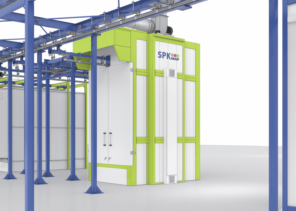 Основное назначение камеры заключается в улавливании порошковой краски, не осевшей на изделии, предотвращении ее попадания в помещение и возврате в технологический цикл. Камера оснащена системой фильтров и встроенными средствами очистки, что позволяет возвращать воздух обратно в пространство цеха.