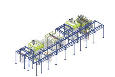 Агрегат для химической обработки поверхности: представляет собой туннельную струйную камеру, через которую на подвесных конвейерах перемещаются изделия. На входе расположены двери для предотвращения утечек. Перемещение траверс управляется электроприводом. Корпус выполнен из сборных элементов со сварными соединениями; внутренняя часть и ванны сделаны из нержавеющей стали.