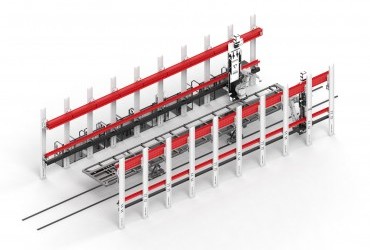 Обеспечивает перемещение изделий между рабочими зонами, комплектуется транспортными тележками. -
